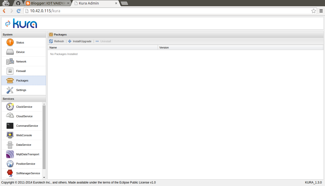 Kura provides an OSGi-based container for IoT applications running in service gateways. By installing Kura on a device, not only can you turn it into a powerful IoT router that can be managed remotely, but you also have access to a complete application framework for deploying custom applications.